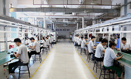 现有组装流水线2条现代化的生产线(可随时扩成4条),对太阳能控制器,逆变器,储能、工业降噪耳机、等工业产品组装经验丰富 ;能够生产绝大部分的数码电子产品,极强的综合生产能力,日产能达到1万PCS以上。防静电PVC空调车间,配备有老化房,测试房,成品测试隔音隔离房等,设备先进、完善,可进行各种产品镭雕、组装、老化、测试、包装等生产。