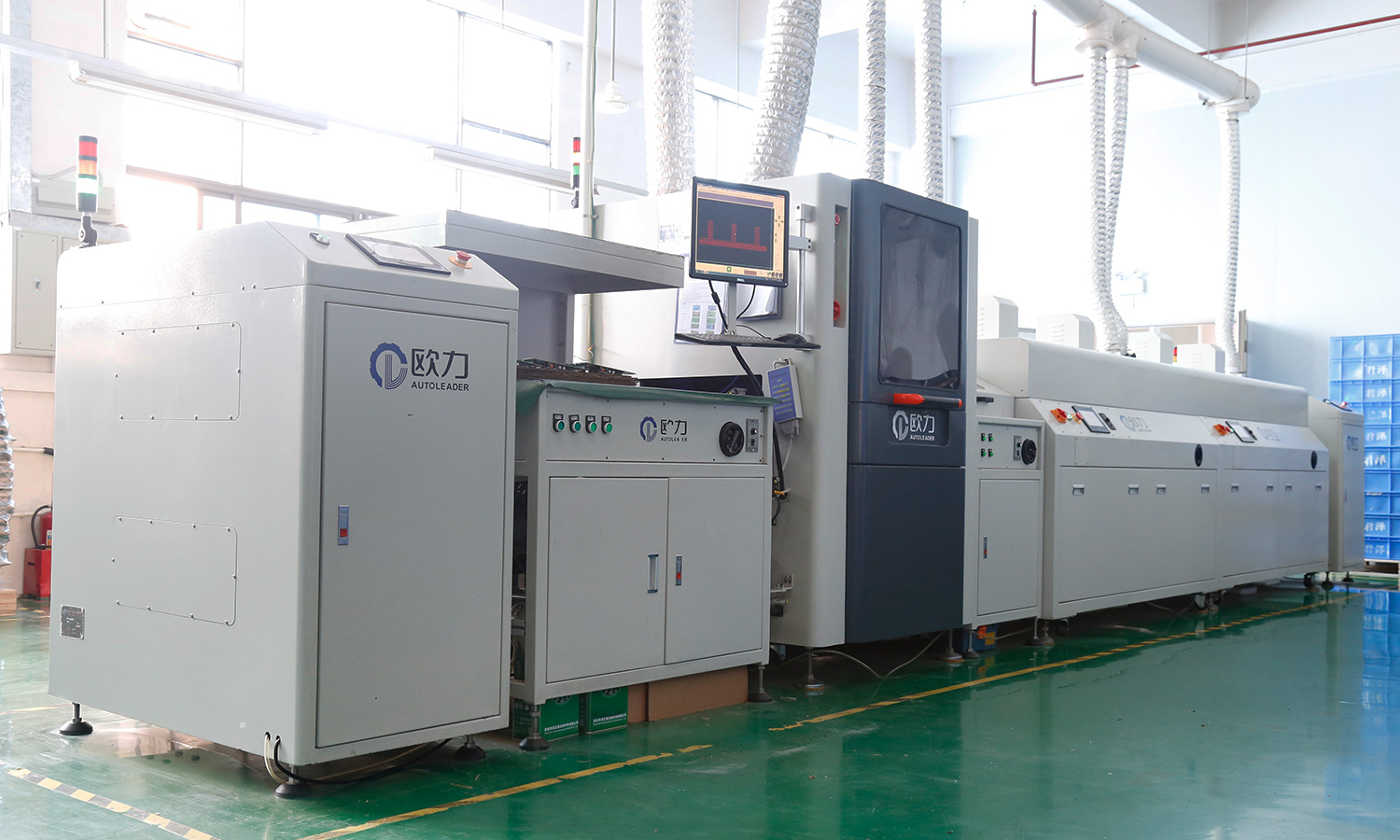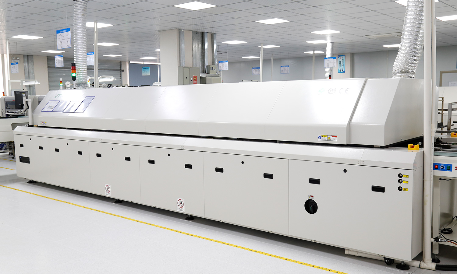 公司从日本引进4条定制的全自动SMT贴片线,2条DIP后焊、组装、测试全套流水生产线;及SPI、SMT首件测试仪、AOI、ICT、ET电源、电子负载、精密电源、老化架、专用全自动测试架功能测试,电子显微镜,烤箱等各种专业的检测设备。