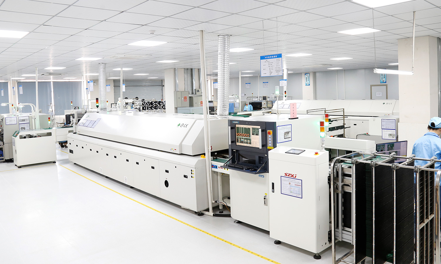 3条全自动SMT线,2条自动波峰DIP线,1条成品组装测试线;